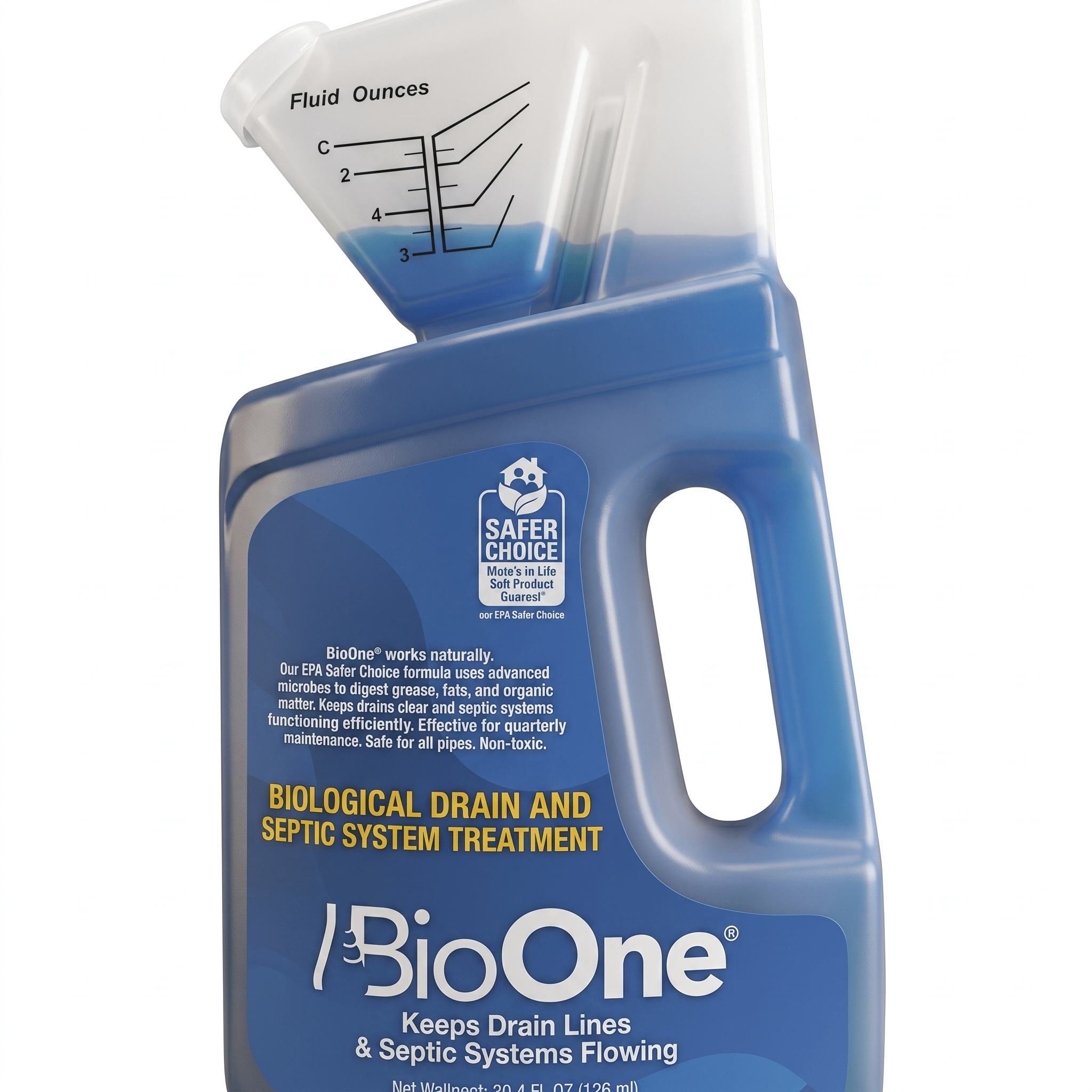 Applied on a regular basis after a drain or septic treatment, BioOne will help to maintain free flowing drains, eliminate odors and reduce the number of back-ups between scheduled pumping. BioOne does not contain enzymes, emulsifiers, or caustic agents and is safer for people, pets and pipes than many drain treatments. In fact, BioOne displays the Environmental Protection Agencys Safer Choice Program logo that allows customers to quickly identify and choose products that can help protect the environment and are safer for families. Adding these beneficial microbes after treatment on a regular basis may help your commercial or industrial customers avoid potentially expensive wastewater surcharges and fines.