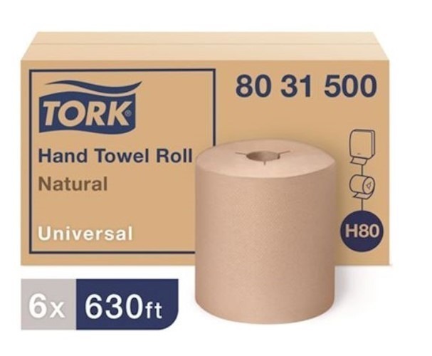 PAPER TOWELS, HARDWOUND, TORK, NATURAL, 630 FT/ROLL, 6 ROLLS/CT